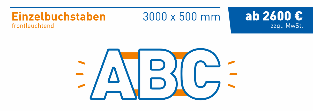 Wir bieten Dir Profilbuchstaben in verschiedenen Bauformen und mit unterschiedlichen Beleuchtungsoptionen. In Abhängigkeit von den Gegebenheiten vor Ort kommen für die Befestigung spezielle Unterkonstruktionen zum Einsatz. So wird Deine Wand geschont und die Profilbuchstaben kommen bestens zur Geltung.