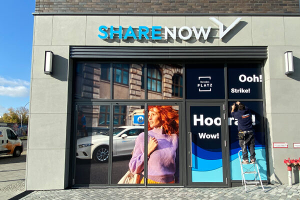 Schaufensterbeschriftung Berlin für SHARE NOW