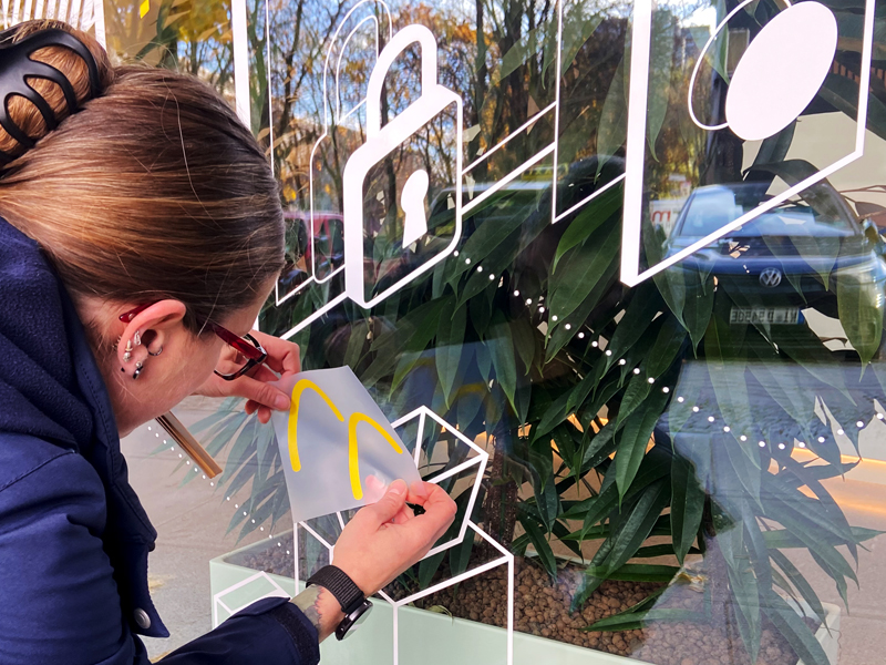 Diese Schaufensterbeklebung entstand im Plottverfahren und besticht durch zahlreiche spannende Details.
