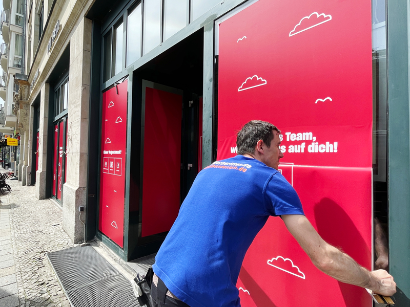 Die Beschriftung wurde von außen an das Schaufenster verklebt, ist witterungsbeständig und auf Wunsch komplett reversibel. Bei den Werberittern profitierst Du von jahrelanger Expertise im Bereich Schaufensterbeschriftung Berlin.